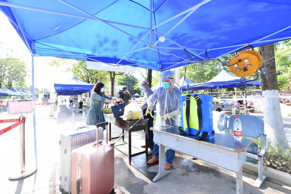 为确保学生返校途中的风险最低化,西南科大在绵阳火车站等交通站点均设有接待处,准备好了测温枪、消毒液等防疫消杀物资,对返校学子进行井然有序的查验工作。在各点负责老师的耐心引导下,测量体温、核验身份、检查健康码、行李消毒、返校登记等工作有条不紊地进行,经查验合格的同学们有序登上已完全消毒的校车,驶向阔别已久的校园。同时,学校将全面禁止未经允许与备案的外来车辆进入,严防病例输入,进一步确保学生安全。“真的非常感谢各位老师,他们的细致和耐心,为我们成功返校提供了安全保障,有他们在,我们很安心。”生命科学与工程学院生物学专业2017级王丹妮在通过检查后由衷地说道。