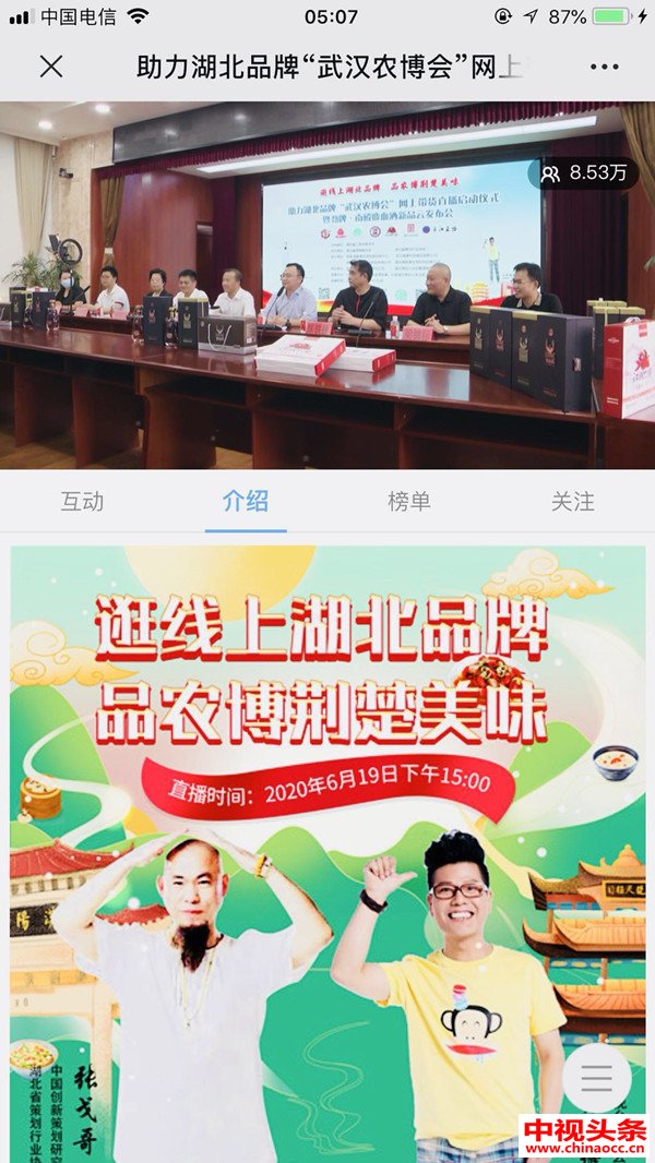 本网讯:6月19日,助力湖北品牌“武汉农博会”网上带货直播启动仪式暨劲牌•南殿鹿血酒新品上市云发布会召开,向全网推介湖北优质农产品。