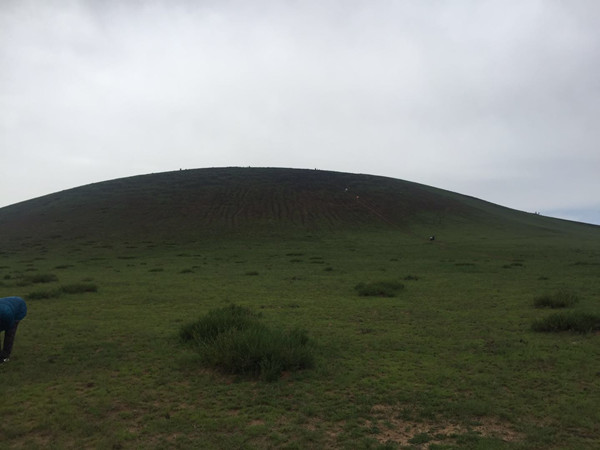 到乌兰察布,一定要去看乌兰哈达火山。我们沐浴着吉祥的蓝天,享受着绿草鲜花的热烈恭迎,沿着草原上的公路前行。绵延的草原横亘在眼前,渐渐天际一些“小土丘”进入视野——这便是火山么?及至来到乌兰哈达火山脚下我才被彻底震撼了!我仰望乌兰哈达火山,经历了万年岁月的磨蚀,它呈锥状的身形静静的矗立在那儿,庄严而凝重。我想象着数万年前,这里的地下熔岩冲破地表土石的桎梏和压迫,喷涌而出,大地在颤抖,天地间火光冲天,烈焰奔腾,灼热的岩浆像河水肆意奔流——那是何等壮观的景象啊!