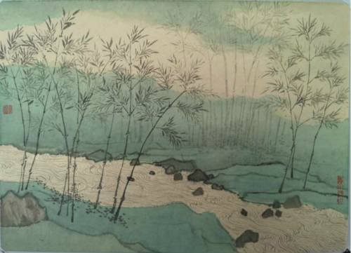 观周燕之画,最深刻的印象就是充满中国人文情节中“采菊东篱下,悠然见南山”的志趣。她植根于中国古人绘画中深厚的沃土,涉取丰富的营养,滋润了她的成长。这使我想起元代画家倪瓒的一幅《渔庄秋雯图》,画中湖水淡荡、空明澄净。在净净的景致中似乎没有一丝人的足迹,没有一声鸟语,但画工之外,一种灵气跃然纸上。我不知道周燕有没有临摹过这幅画,但她肯定“入古”颇深,古人画作中的意境浸染在她的笔下,使她画作呈现古淡天然,高洁脱俗,清疏俊郎之气韵。一个真正的画家,既要必须“入古”,又要懂得“出新”。在周燕山水画意境的构造中,我觉得在中国传统文化之外,西方文化似乎对她也有一定的影响,特别是看她最近一幅《立夏夜》的作品,水波的波涛似乎可以从凡·高《自画像》中的旋卷中看到影子,波涛给人一种力量,既有生命的坚实又有超凡的心境,我想这正是她不断在破与立中,对自己艺术意蕴的一种探索与超越。只有真正“入古”,又能更好“出新”,艺术才能有真正的生命力。