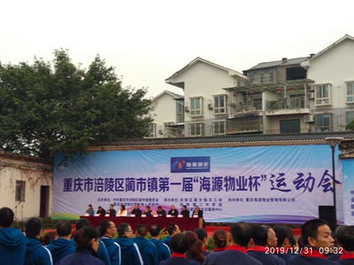 据蔺市镇党委副书记、镇长何伟介绍:“为蔺市镇第一届“海源物业杯”运动会提供全程赞助的是重庆海源物业管理有限公司,海源物业是涪陵区2018年先进基层党组织、全国百强物业企业位列第61位,是蔺市本土优秀企业代表,涪陵区物业龙头企业。”